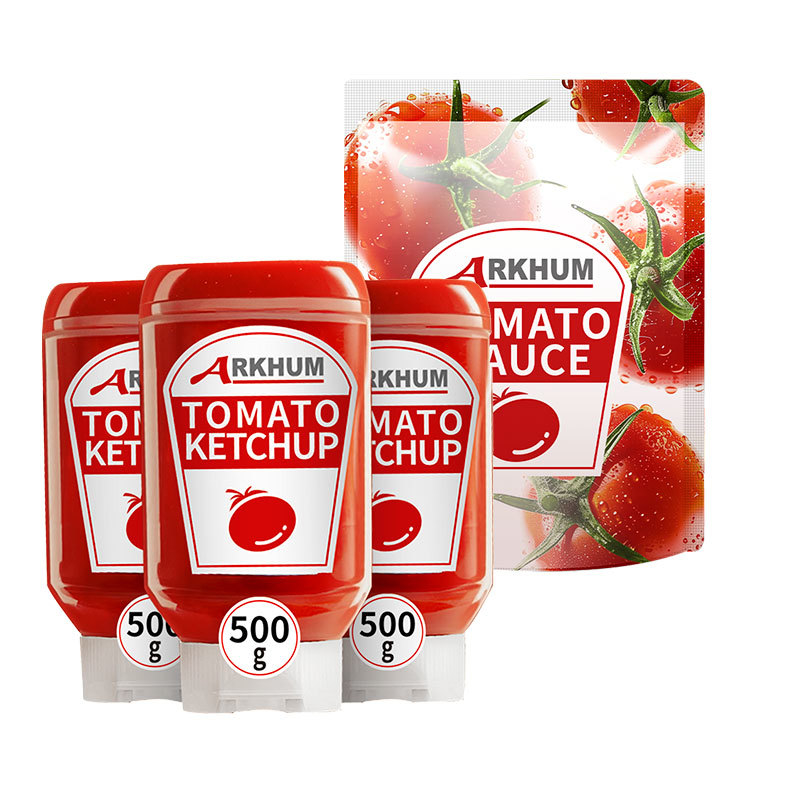 Zindywidualizowany z logo zgodnie z wymaganiami klienta, sos ketchupu pomidorowego ARKHUM dodaje osobisty akcent do Twoich dań.Dwuletnia długość trwania i wymagania dotyczące przechowywania w temperaturze pokojowej sprawiają, że jest to wygodny i trwały artykuł podstawowy w spiżarni.